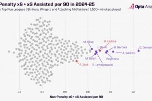 数据统计显示,不计点球情况下,埃基蒂克上赛季在联赛的每90分钟预期参与进球值高达0.91,这一数字仅次于登贝莱、索尔洛特、巴尔科拉和拉菲尼亚,在同期至少出场1500分钟 的五大联赛前场球员(中锋、边锋和前腰)位列第5位。
